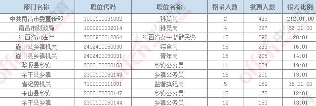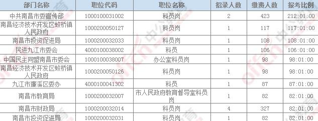 從今天的職位報名情況來看,報名人數(shù)最多的職位依然是“中共南昌市委宣傳部”,目前已經(jīng)繳費423人,該職位計劃招考2人,報考比例212:1。該職位也是目前競爭最激烈的職位。