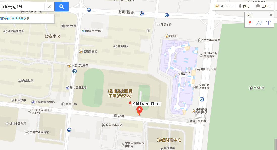 | 3 | 銀川唐徠回中西校區(qū) | 銀川市金鳳區(qū)正源北街育安巷1號(hào) | 查看地圖 |