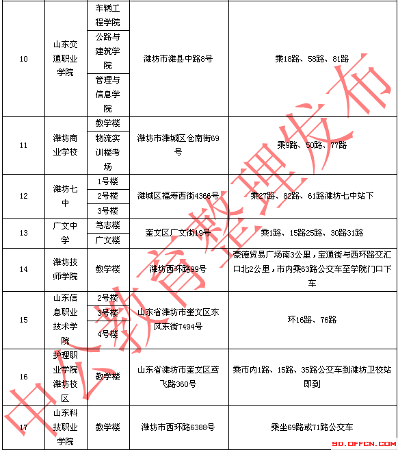 2015年山東【濰坊】公務員考試考場考點指南相關(guān)信息