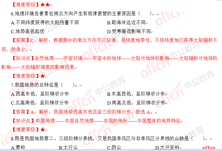 2017年江西教師統(tǒng)考《高中地理》答案解析