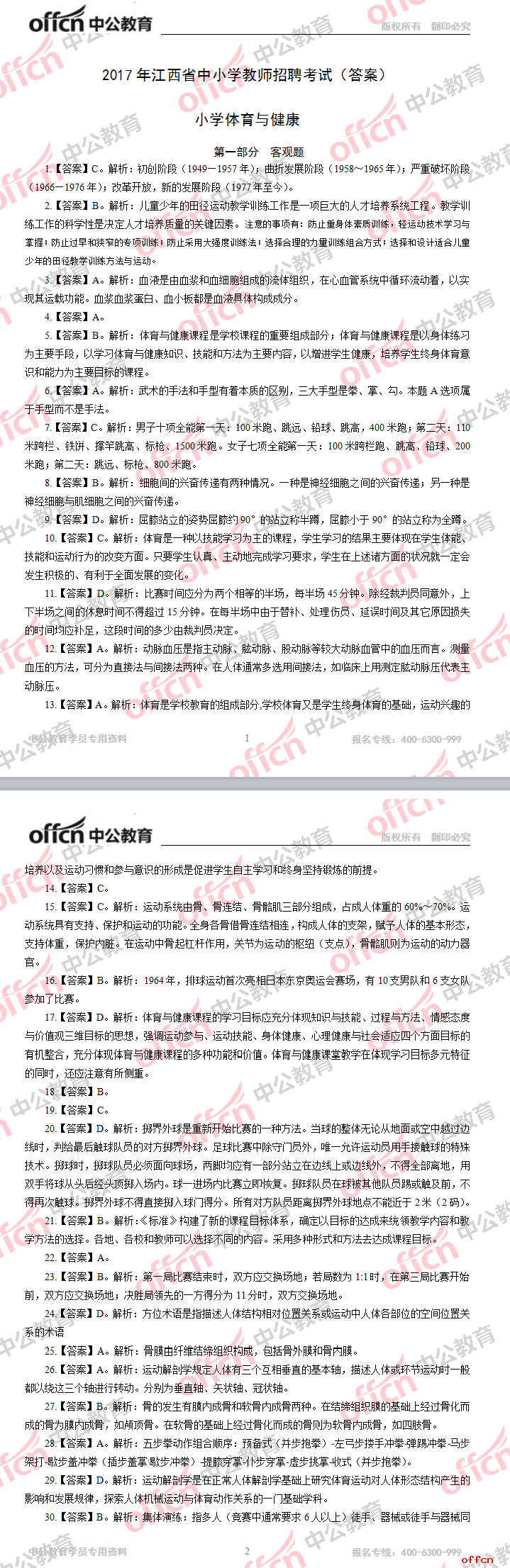 2017年江西教師招聘《小學(xué)體育》答案及解析