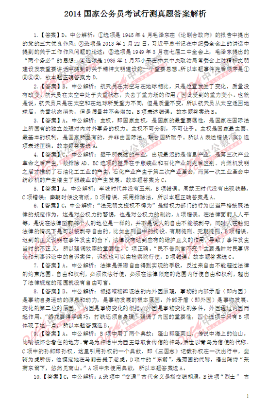 2014年國(guó)家公務(wù)員考試行測(cè)解析