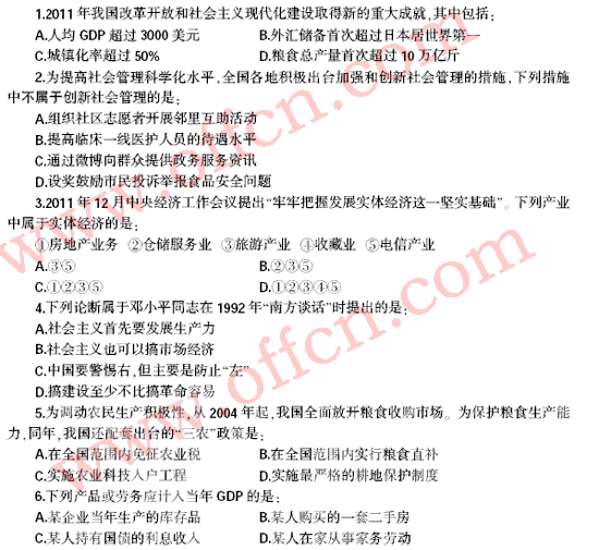 2012年福建公務(wù)員行測
